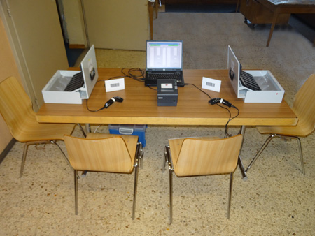 | 1) Au moyen de 1 ou 2 douchettes laser ainsi qu’un note book d’enregistrer le numéro de toutes les cartes et planches Loto-tronic. |