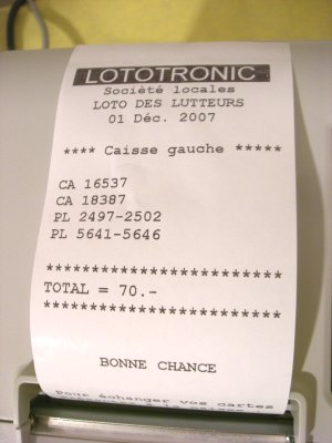 | 3) D’imprimer après lecture du code barre « ENREGISTRER » un reçu mentionnant le(s) numéro(s) de(s) carte(s) ou planche(s) achetées, le montant que la personne doit s’acquitter à la caisse, ainsi que 6 lignes libres programmées par l’organisateur. |